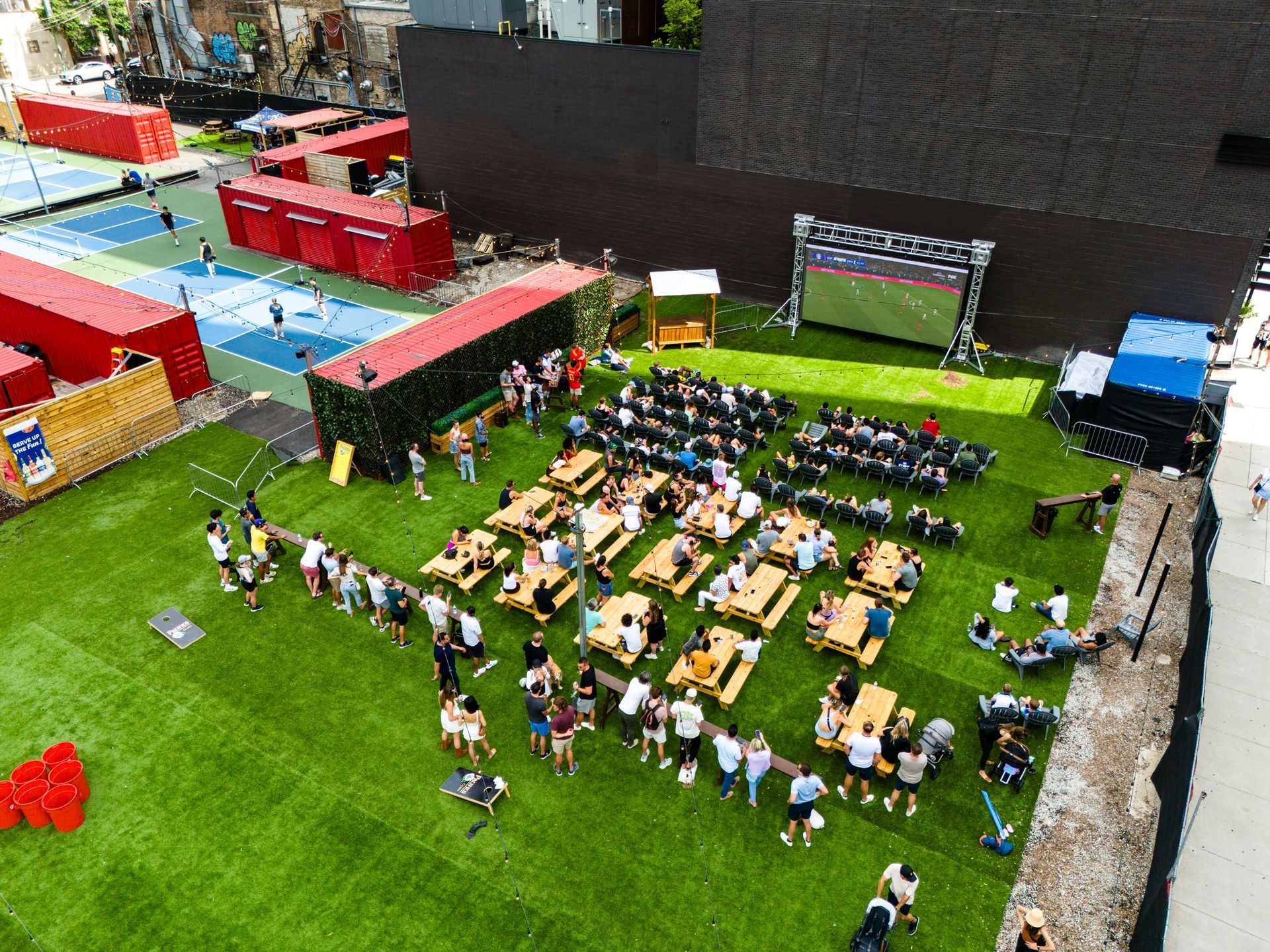 Your new go-to spot in Fulton Market. A welcoming place to gather, unwind, and enjoy the best of outdoor cinema. With the city skyline as our backdrop, we host a vibrant mix of events, from movie nights to fitness festivals. Savor delicious local food from our exclusive partnerships and specialty cocktails crafted just for you. Join our community and immerse yourself in the heart of Chicago's cultural scene.